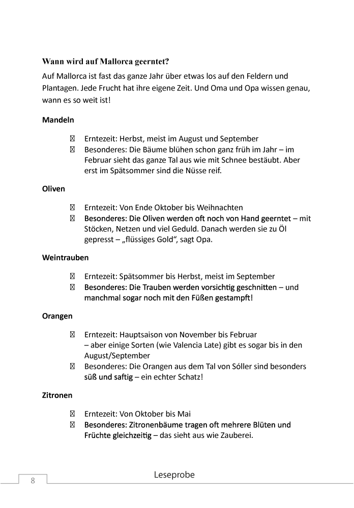 Dort helfen sie bei der Mandel- und Olivenernte, fahren Traktor, erleben ein Gewitter-Abenteuer, finden eine Schildkröte im Weinberg und entdecken, wie viel Arbeit, Liebe und Tradition in jeder Flasche Olivenöl steckt.