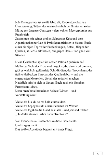 Nils ist 12 Jahre alt, trägt fast immer eine rote Mütze – und glaubt, er sei der Urenkel von Jacques Cousteau. Seine große Schwester Kaja ist 16, hängt am Handy – und findet den Sommerurlaub auf der Finca auf Mallorca zunächst nur so mittelspannend.