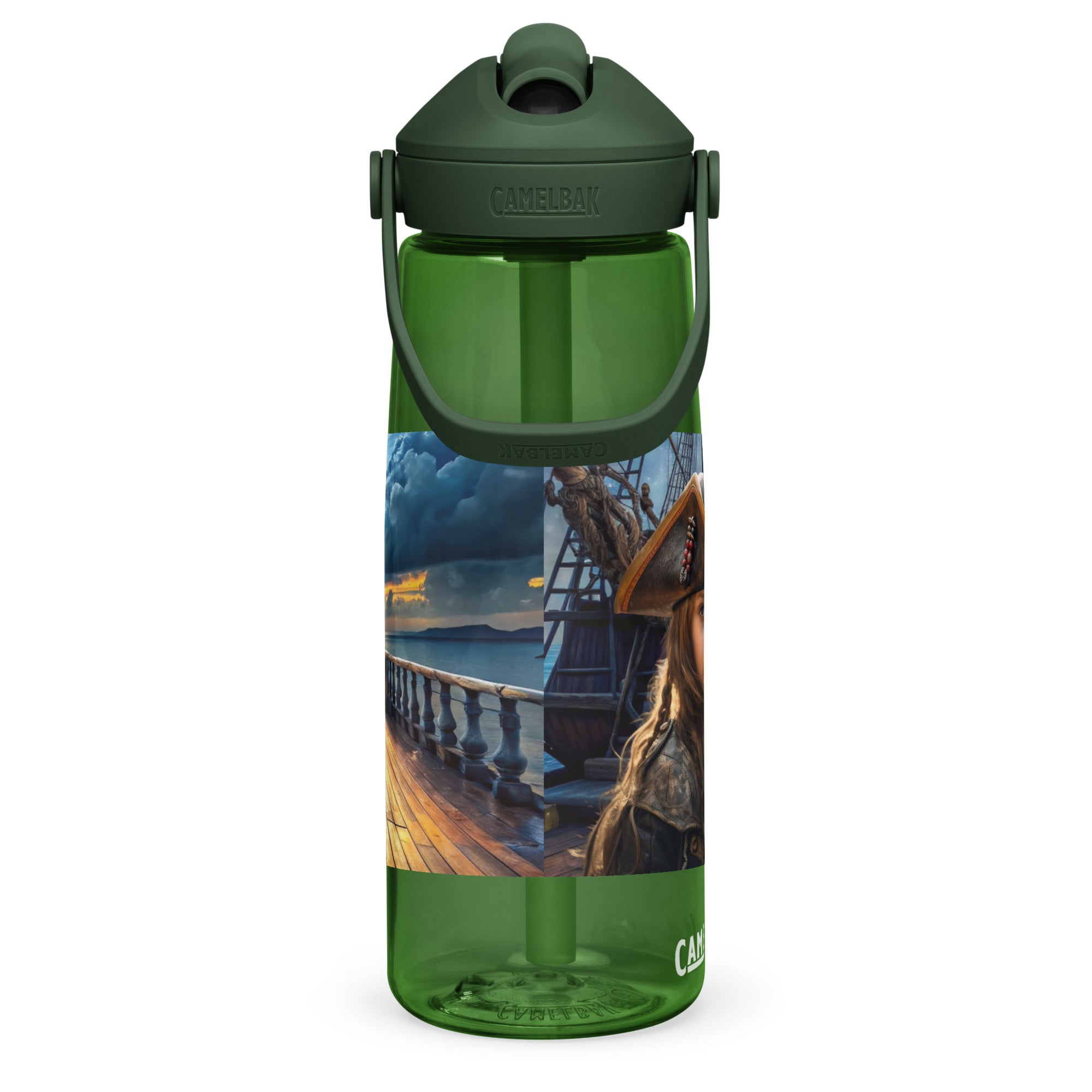 Wasserflasche mit umklappbarem Trinkhalm Piratin Leni segelt um Mallorca